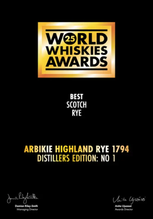 "Arbikie Distillery and our Highland Rye whisky embody everything our family has been doing since we started farming over 400 years ago." Iain Stirling commented.